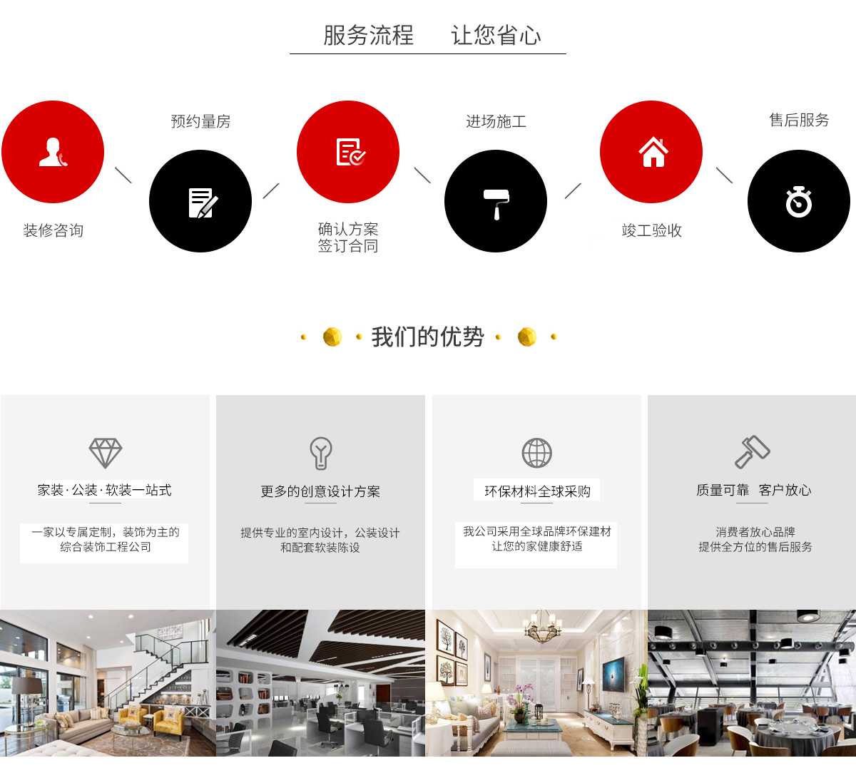 公司經(jīng)營范圍:建筑工程裝飾裝修、園林綠化工程服務(wù)、外墻保溫工程施工、建筑工程安裝服務(wù)、建筑裝飾材料銷售。公司擁有300平方米辦公空間,硬件配套設(shè)施齊全,具有現(xiàn)代化的工作環(huán)境及條件。公司體制完整、部門齊全,對工程的設(shè)計、施工及后期服務(wù)有一套成熟有效的管理制度和嚴(yán)格科學(xué)的質(zhì)量保障體系。多年來,所承接并完成的各類大、中、小型工程均受到了業(yè)主的一致好評,在裝飾市場贏得良好的信譽,在業(yè)界享有較高的知名度。